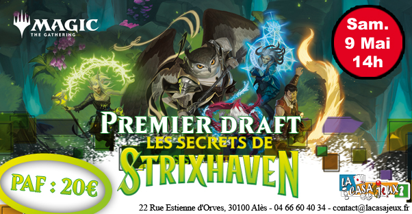 Nouveau draft Magic à la boutique ! Ce sera la première occasion de s'essayer à la nouvelle extension : Les secrets de Strixhaven ! Le PAF sera de 20€. Chaque joueur aura à l'inscription ses 3 boosters, ainsi qu'un booster promo. De plus, pendant le tournoi, chaque joueur gagnera un booster promo après chaque victoire. Chaque joueur repartira ensuite avec