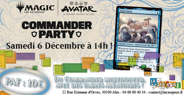 Nouvelle Commander party à la boutique ! Ça donnera une après-midi de commander multijoueur, avec des tables tirées au hasard (en essayant au maximum d'avoir des tables de 4 joueurs), et on enchainera autant de rondes que le temps nous le permettra (jusqu'à un peu avant la fermeture hein ! ^^). Le PAF sera de 10€, avec 1 booster, 1