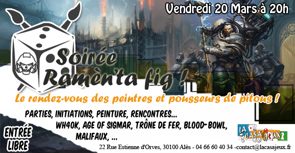 Dans la veine des soirées « Rencontres & JDR », la Casa’Jeux vous propose une soirée, ayant vocation à devenir régulière, mettant à l’honneur les jeux de figurines.