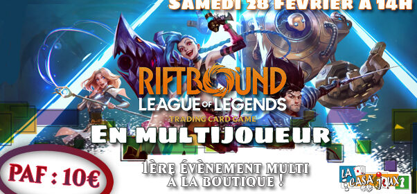 Chaque joueur aura à l’inscription une conso (boisson ou snack), une carte promo de participation, ainsi qu’un booster Riftbound.